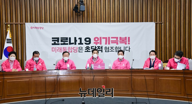 심재철 미래통합당 원내대표가 6일 오전 국회에서 열린 원내대책회의에서 모두발언을 하고 있다.