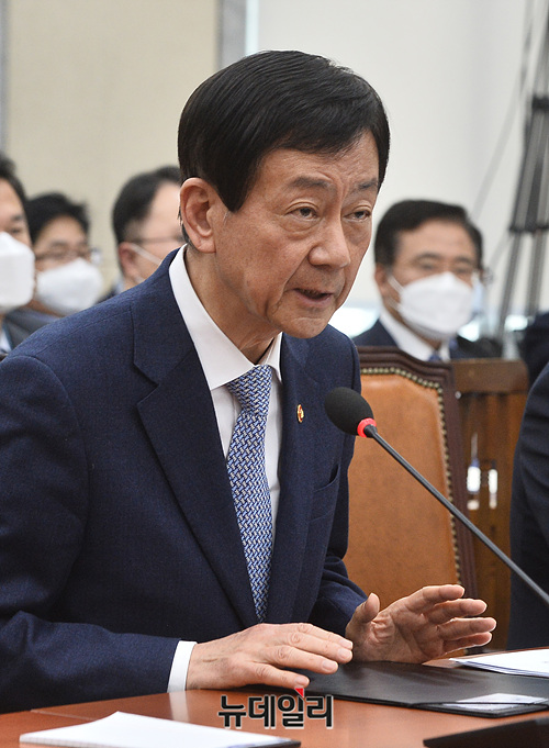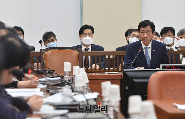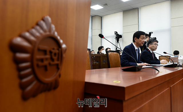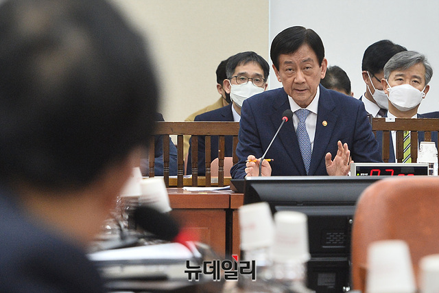 진영 행정안전부 장관이 6일 오후 국회에서 열린 행정안전위원회 전체회의에서 의원들의 질의에 답하고 있다.