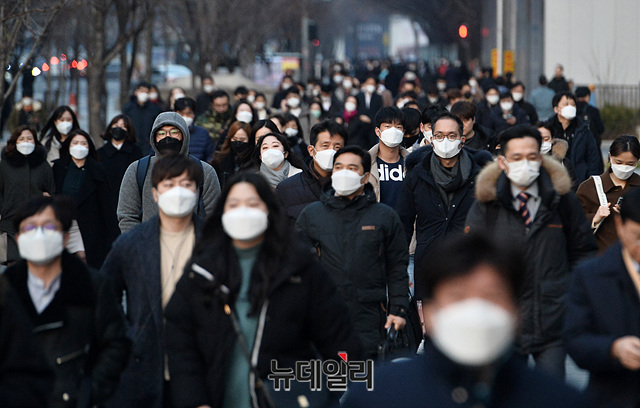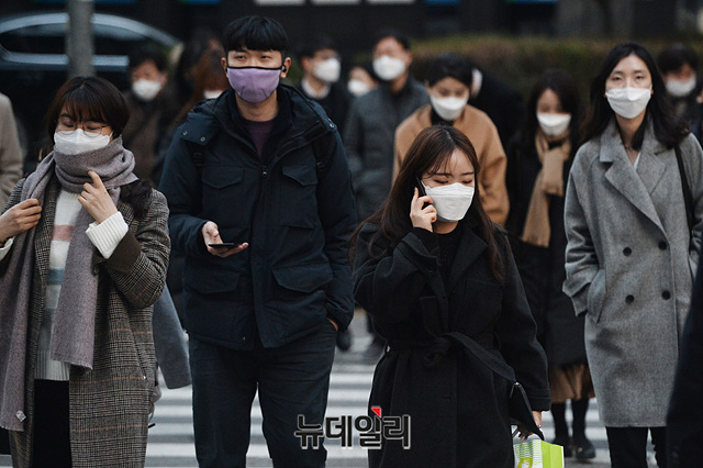 국내에서 '코로나19(중국 우한 폐렴)' 확진자가 309명이 추가로 발생해 6,593명을 나타낸 6일 오후 서울 여의도에서 시민들이 마스크를 낀채 퇴근하고 있다.문재인 대통령은 오늘(6일) "코로나19 사태 대응책인 '마스크 5부제'의 대리수령 범위를 넓히라"고 청와대에 지시했다. 현재 공적 마스크의 공급대책에는 대리 수령은 장애인만 하도록 되어있다.'마스크 5부제'는 출생연도에 따라 마스크를 살 수 있는 요일을 정한 제도로, 1인당 공적 마스크 구매수량을 일주일에 2매까지만 허용한다.이날 오후 국내 코로나19 현황은 △확진환자 6,593명 △검사진행 21,832 △사망자 42명으로 집계됐다.
