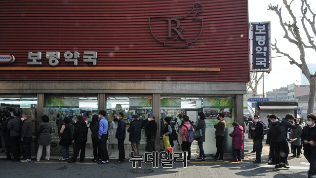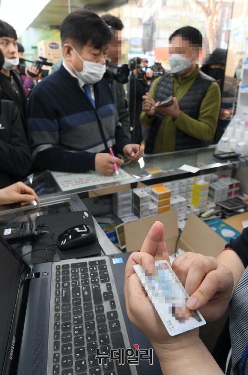 '마스크 5부제'가 처음 시행된 9일 오전 서울 종로구 종로5가역 주변 약국에 시민들이 공적마스크를 사기 위해 줄을 서있다.'마스크 5부제'는 출생연도에 따라 마스크를 살 수 있는 요일을 정한 제도다. 월요일인은 1·6년생만 살 수 있다. 마스크를 구매하기 위해선 신분증을 제시해야 하고, 중복구매 확인시스템에 구매 이력을 입력하면 이번주는 구매할 수 없다. 만 10세 이하 어린이(2011년, 2016년)나 만 80세 이상 노인(1931년, 1936년)의 경우 출생연도 요일에 맞춰 주민등록등본을 제시해 대신 살 수 있다.공적마스크 들어오는 시간은 각 약국마다 달라 사전에 연락 후 찾아가야 한다.