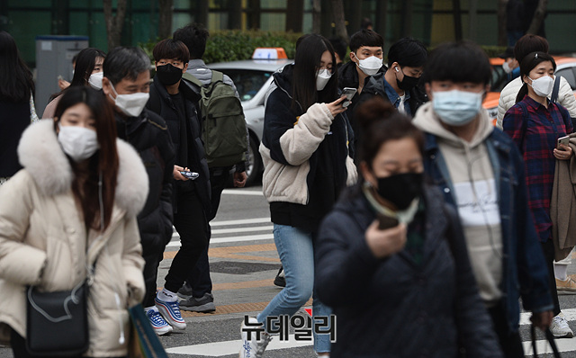 마스크 5부제가 실시된 9일 오후 서울 구로구에서 시민들이 마스크를 낀채 퇴근하고 있다.'마스크 5부제'는 출생연도 끝자리가 1, 6이면 월요일, 2, 7이면 화요일, 3, 8이면 수요일, 4, 9이면 목요일, 5, 0이면 금요일에만 공적마스크를 구입할 수 있는 제도다. 주중에 구입하지 못하면 주말을 이용하면 된다. 1인당 공적 마스크 구매수량을 일주일에 2매까지만 허용한다.이날 오후 국내 코로나19 현황은 △확진환자 7,478명 △검사진행 17,458 △사망자 53명으로 집계됐다.