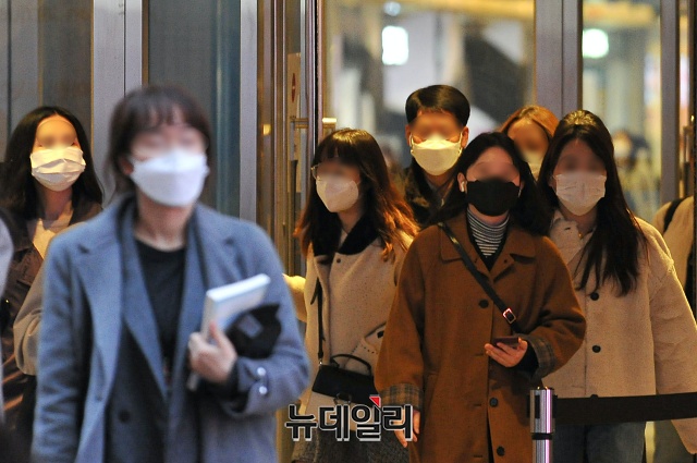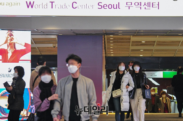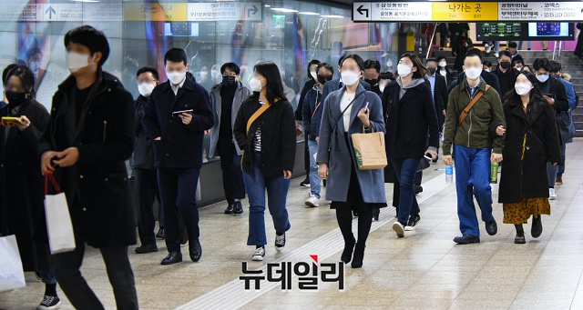 '마스크 5부제' 첫 시행일인 9일 오후 서울 강남구 삼성역에서 시민들이 마스크를 쓰고 퇴근하고 있다.'마스크 5부제'는 출생연도 끝자리가 1, 6이면 월요일, 2, 7이면 화요일, 3, 8이면 수요일, 4, 9이면 목요일, 5, 0이면 금요일에만 공적마스크를 구매할 수 있는 제도다. 평일에 구매하지 못한 사람에 한해서 주말에 구매 가능하다. 1인당 공적 마스크 구매수량을 일주일에 2매까지만 허용한다.9일 오후 현재 '코로나19' 감염현황은 확진환자 7,478명, 사망자 53명을 기록하고 있다.