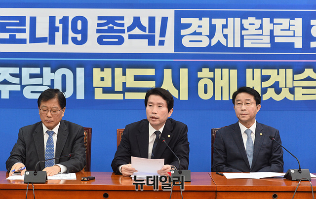 이인영 더불어민주당 원내대표가 10일 오전 국회에서 열린 원내대책회의-상임위간사단 연석회의에서 모두발언을 하고 있다.