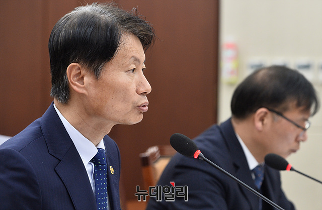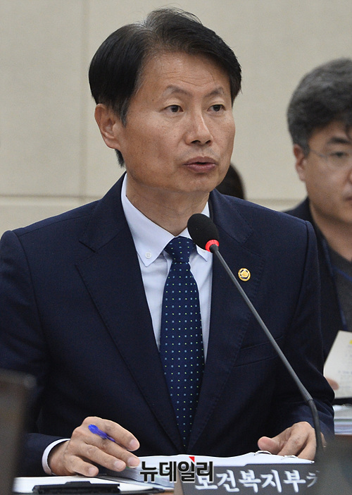 김강립 보건복지부 차관이 10일 오전 국회에서 열린 보건복지위원회 전체회의에서 의원들의 질의에 답하고 있다.
