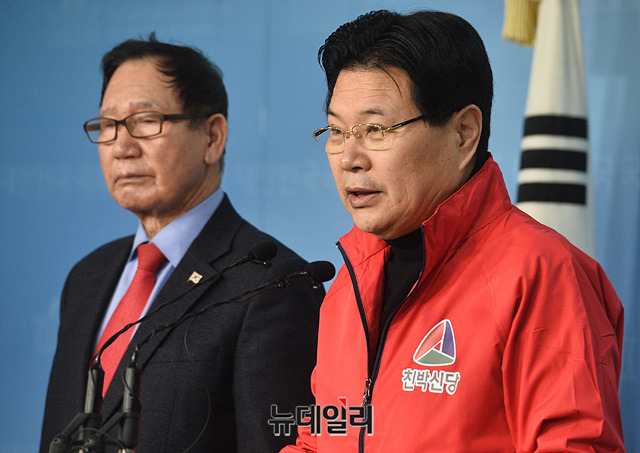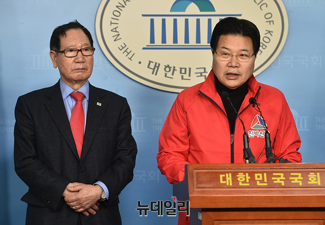 [포토] 친박신당 정당등록 기자회견 갖는 홍문종