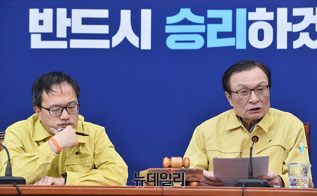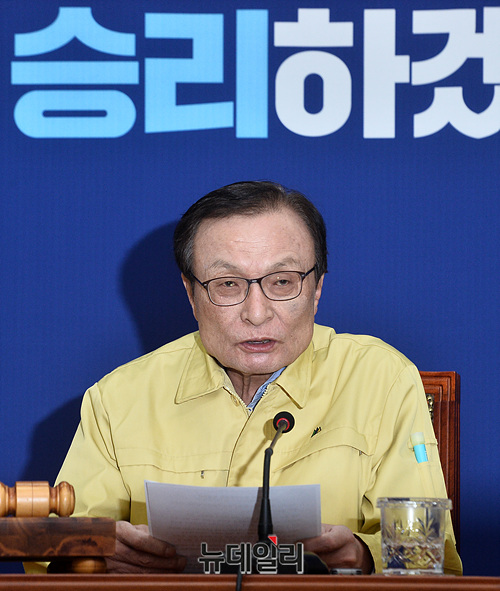 이해찬 더불어민주당 대표가 11일 오전 국회에서 열린 최고위원회의에서 모두발언을 하고 있다.