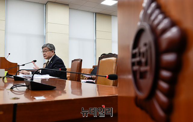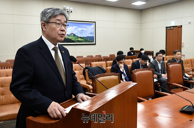 이재갑 고용노동부 장관이 11일 오후 국회에서 열린 환경노동위원회 전체회의에서 발언을 하고 있다.