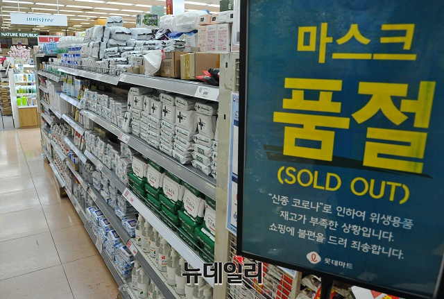 이 마트는 오전 10시부터 준비한 보건용 마스크를 판매를 시작했다. 20분만에 매진됐다. 마스크 코너엔 손 소독제, 물티슈 등 소독 제품들이 대신 자리를 채웠다.