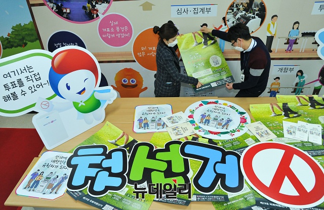[포토] 만18세 유권자 홍보자료 점검하는 서울시 선거관리위원회