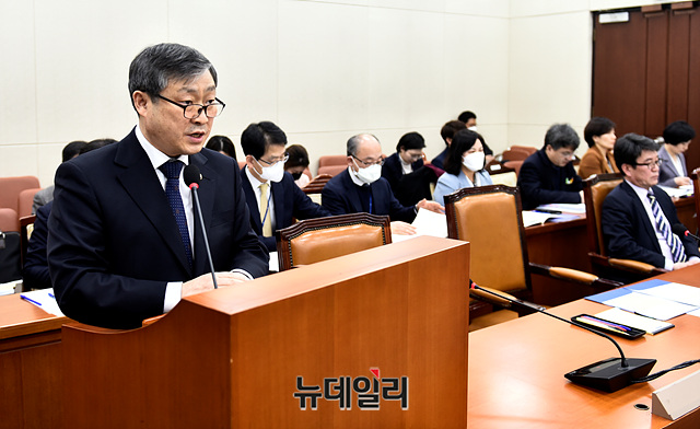 박백범 교육부 차관이 12일 오후 국회 보건복지위원회에서 열린 코로나19 대책 특별위원회에서 현안보고를 하고 있다.