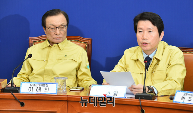[포토] 코로나 관련 발언하는 이인영 민주당 원내대표