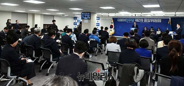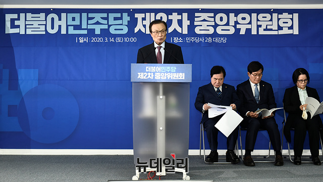 이해찬 더불어민주당 대표가 14일 오전 서울 여의도 더불어민주당 중앙당사에서 열린 제2차 중앙위원회에서 발언을 하고 있다. 이날 민주당은 4.15총선을 위한 비례대표 후보 순번을 결정한다.