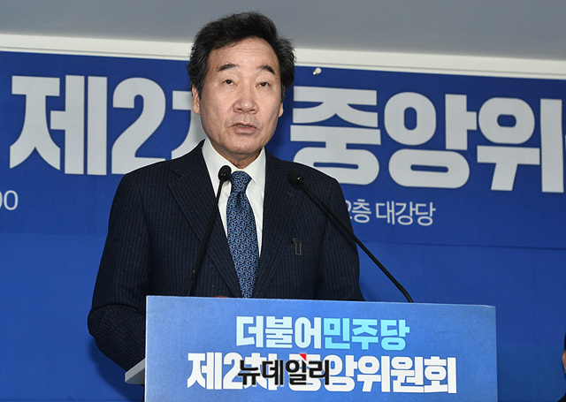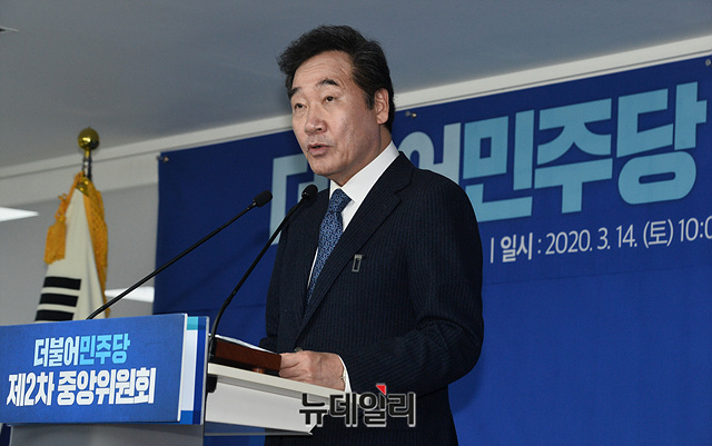 이낙연 공동 상임선대위원장이 14일 오전 서울 여의도 더불어민주당 중앙당사에서 열린 제2차 중앙위원회에서 발언을 하고 있다. 이날 민주당은 4.15총선을 위한 비례대표 후보 순번을 결정한다.