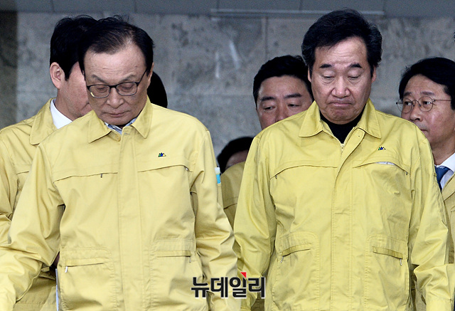 이해찬 더불어민주당 대표, 이낙연 코로나19국난극복위원장, 이인영 원내대표 등 지도부가 16일 오전 국회에서 열린 제3차 코로나19 국난극복위원회 회의에 입장하고 있다.