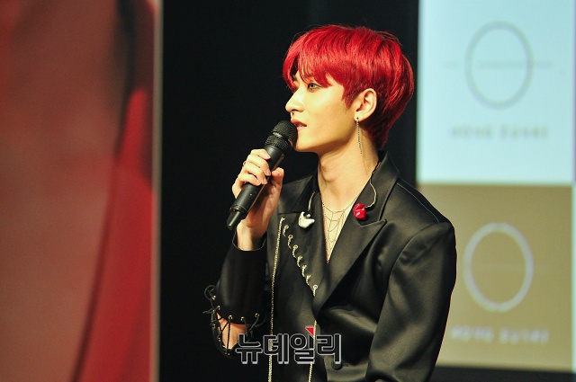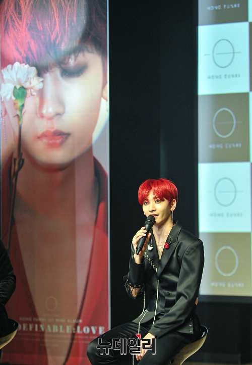 가수 홍은기가 16일 오후 서울 강남구 일지아트홀에서 열린 첫번째 미니앨범 'UNDEFINABLE:LOVE(언디파이너블:러브)' 쇼케이스에서 취재진의 질문에 답하고 있다.