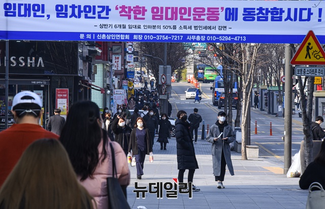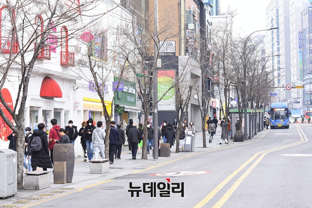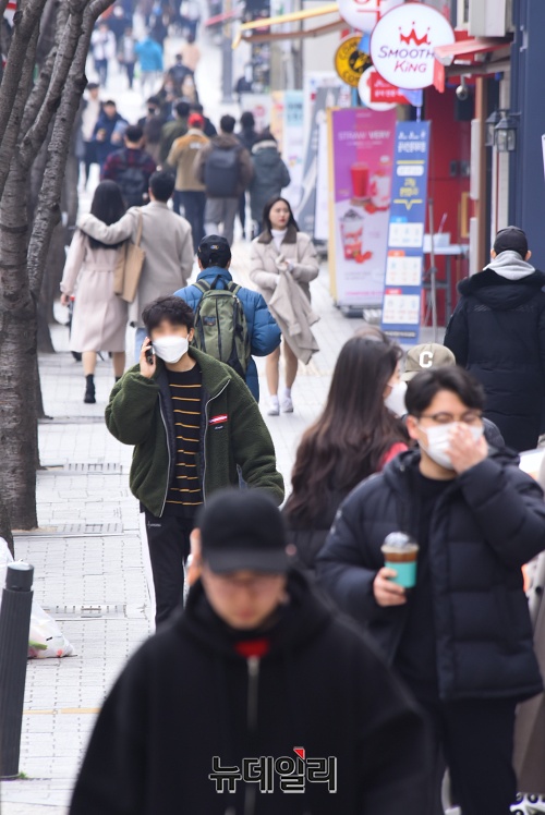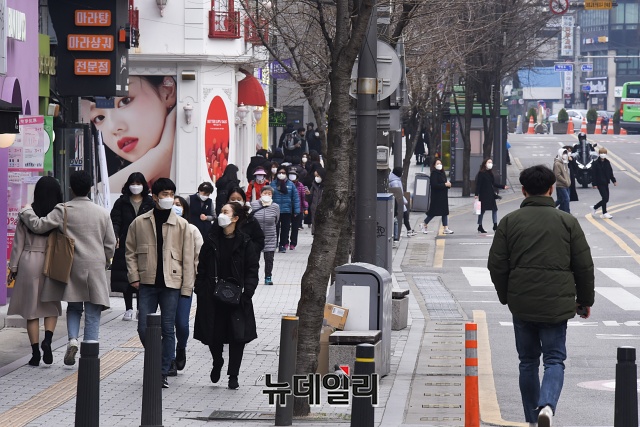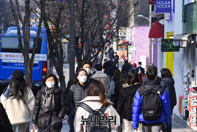 '코로나19(중국 우한 폐렴)' 여파로 초·중·고등학교 개학이 2주 연기된 17일 오후 서울 서대문구 신촌 연세로에 사람들이 이동하고 있다.