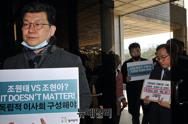 채이배 민생당 의원을 비롯한 참여연대 경제금융센터, 민변 민생경제위원회 등이 18일 오전 서울 서초구 서울중앙지검에서 '대한항공 항공기 리베이트 의혹'과 관련해 조원태, 조현아 등 대한항공 경영진 고발장을 제출하기 위해 이동하고 있다.
