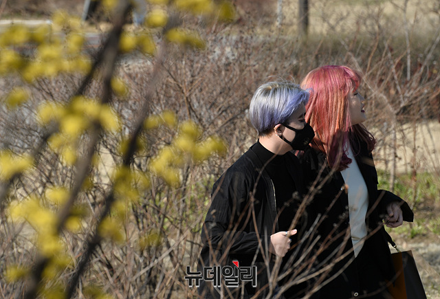 [포토] 봄꽃 핀 한강공원, 여유즐기는 시민들
