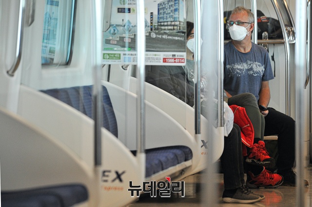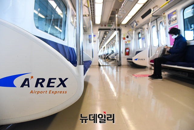 '코로나19(중국 우한 폐렴)' 세계적 대유행에 따른 전 국가 모든 입국자를 대상으로 특별입국절차를 실시하기 하루 전인 18일 오후 인천국제공항으로 가는 공항철도가 한산한 모습을 보이고 있다.정부는 '코로나19' 여파로 항공업계가 비상위기에 처하자 운항중단으로 미 사용한 운수권과 슬롯(시간당 비행기 운항 가능 횟수) 회수 전면 유예와 공항시설사용료 감면 확대 등의 대책을 내놨다.추가적으로 항공기 착륙료 20%를 즉시 감면하고, 항공기 정류료도 3개월 전액 면제할것이라 밝혔다. (인천=권창회 기자)