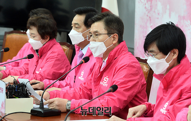 황교안 미래통합당 대표가 19일 오전 국회에서 열린 최고위원회의에서 모두발언을 하고 있다.