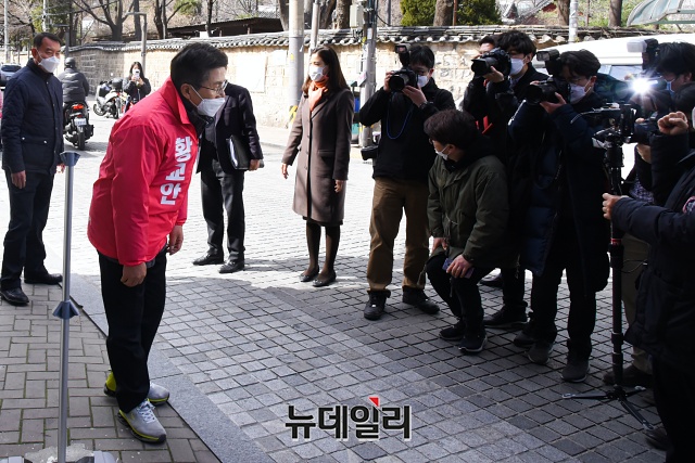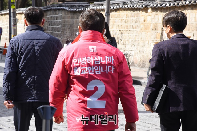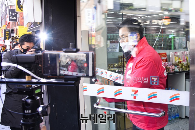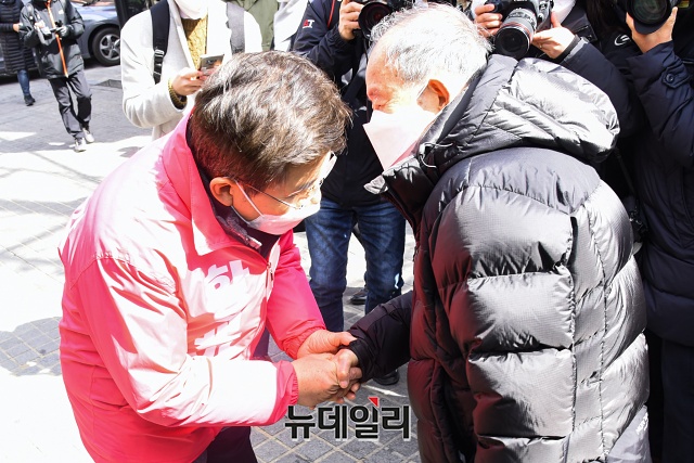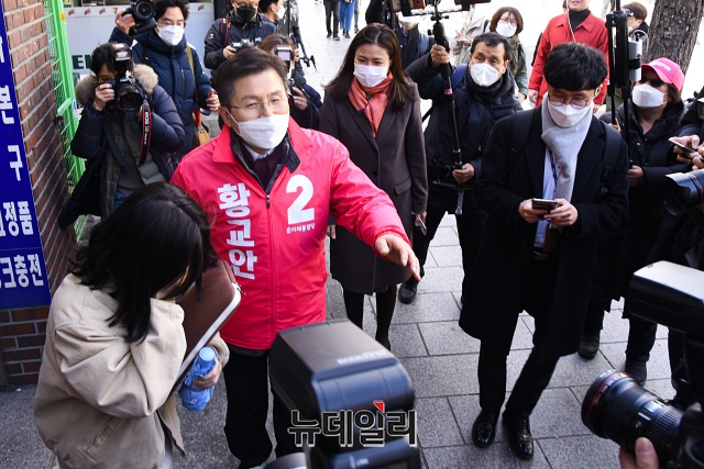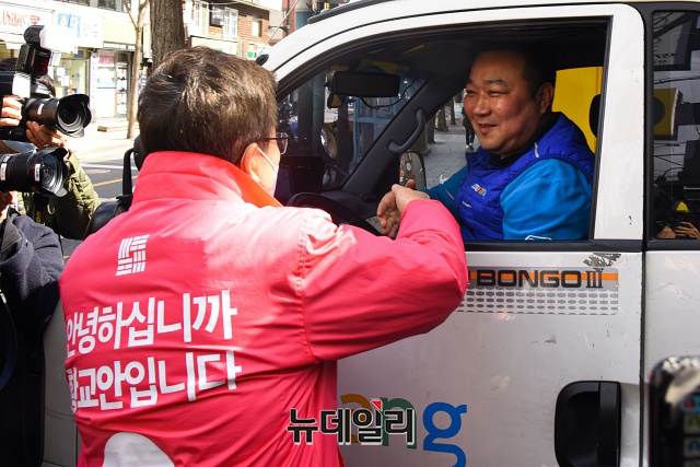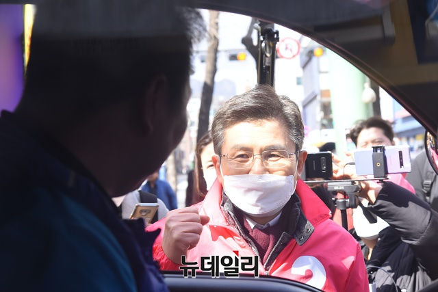 4.15 총선에서 서울 종로구에 출마하는 황교안 미래통합당 대표가 19일 오후 서울 종로구 성균관대학교 주변 거리에서 시민과 인사를 나누고 있다.황 대표는 종로구에 있는 성균관대학교와 방송통신대학, 상명대 등 10여개 대학과 연계해 연구개발특구로 지정하는 방안을 강구했다.또 서울대 의과대학과 '분자의학 및 바이오제약 연구센터'를 설립해 지역경제를 활성화 방안을 공개하고 "종로를 4차 산업혁명 1번지로 만들어 청년 일자리를 100개 이상 창출하겠다"고 말했다.
