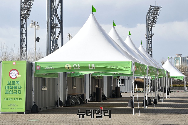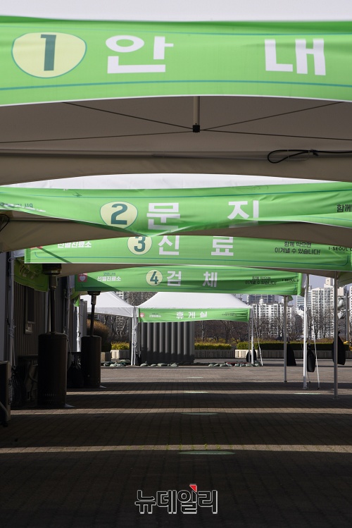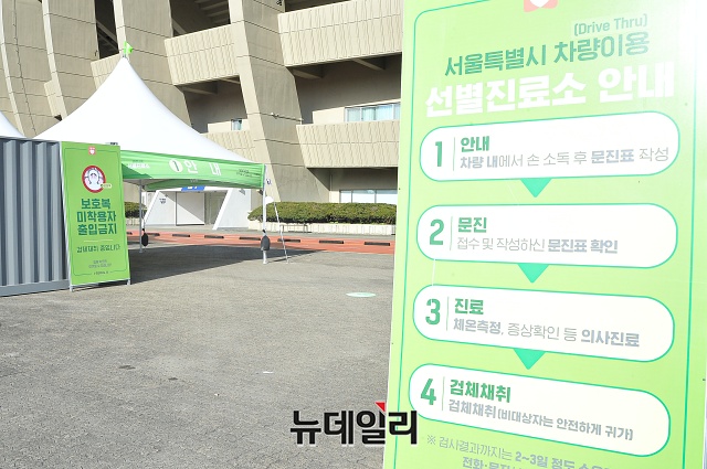 [포토] 서울시 강풍경보 격상...차량 이용 선별진료소 19일 중단