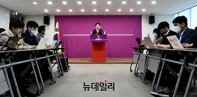 원유철 미래한국당 신임 당대표가 20일 오전 서울 영등포구 미래한국당 당사에서 열린 기자회견에서 인사말을 하고 있다.원 대표는 미래통합당과 미래한국당의 공천 갈등 문제에 대해 "단계를 밟아 성장하는 길에 피할수 없는 시행착오였다"며 "문재인 정권에 대항해 더 큰 승리의 길 가기위한 통과 의례 불과할 뿐 결코 장애물이 될 수 없다"고 했다.이어 "더 이상의 시행착오가 있어서는 안되는 만큼 신속하게 미래한국당의 혼란을 수습하고 체제를 정비하겠다"고 했다.미래한국당은 19일(어제) 한선교 한국당 대표가 자진 사퇴로 공석이 된 새 당대표에 원유철 의원을 추대했다. 원 의원은 19일 미래통합당을 탈당해 곧바로 미래한국당에 입당했다.