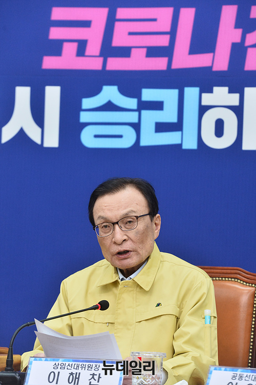 이해찬 더불어민주당 대표가 20일 오전 국회에서 열린 코로나19 국난극복위원회-선거대책위원회 연석회의에서 모두발언을 하고 있다.