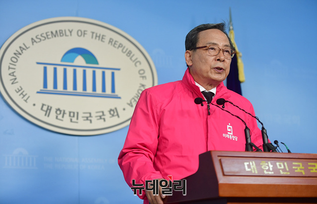 신세돈 미래통합당 중앙선거대책위원회 공동위원장이 20일 오후 국회 정론관에서 정부의 '코로나19(중국 우한 폐렴)' 대응 민생금융안정 패키지 프로그램과 관련해 기자회견을 갖고 있다.신 위원장은 "정부의 50조는 허수에 불과하다"며 "실제로 각종 피해를 지원하는 것이 못된다"고 문제점을 지적했다.이어 "미래통합당은 경영피해, 매출피해, 고용피해 등 경영애로를 즉각 보전하는 정책을 입안 중이다"며 "피해의 정도, 지역 등에 따라 차등화하는 방법을 적용해 선지원 후정산 하는 방법을 택하겠다"고 말했다.