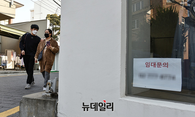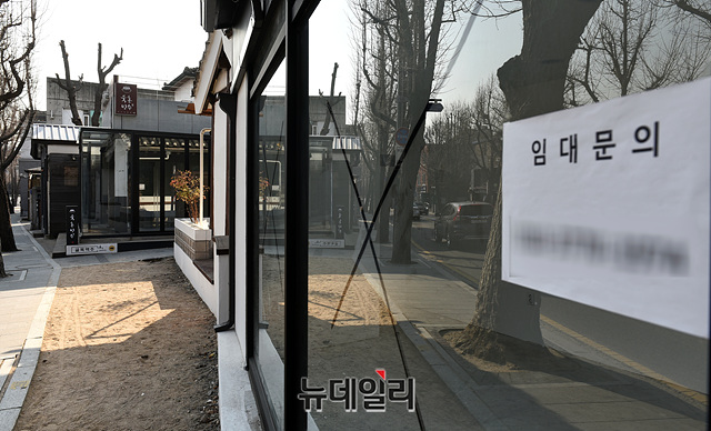 '코로나19(중국 우한 폐렴)'의 영향으로 서울 시민들의 체감 경기가 급격히 얼어붙은 24일 오후 서울 종로구 한 상가에 임대 문구가 붙어있다.이날 정세균 국무총리는 "한 사람의 방심이 다른 누군가에게 회복할 수 없는 상처를 입히고, 공동체를 무너뜨릴 수 있다"며 "4월 5일까지 정부는 모든 행정력을 동원해서 강화된 '사회적 거리두기'의 실천에 나서겠다"고 말했다.'사회적 거리 두기'는 코로나19의 지역사회 감염 확산을 막기 위해 사람들 사이의 거리를 유지하는 조치를 말한다.이날 오후 국내 코로나19 현황은 △확진환자 9,037명 △검사진행 15,440명 △사망자 125명으로 집계됐다.