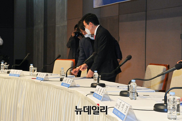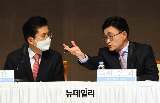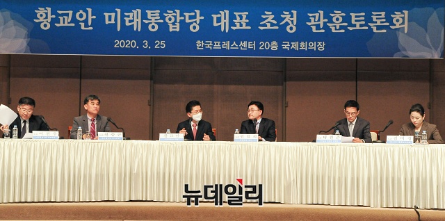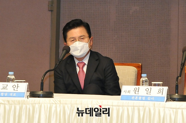 황교안 미래통합당 대표가 25일 오전 서울 중구 프레스센터에서 열린 관훈클럽 초청 토론회에 입장하고 있다. 이날 토론회는 미래통합당 비례정당에 대한 입장과 총선 주요내용, '코로나19(중국 우한 폐렴)' 대응을 위한 여야 협력 등을 주제로 진행됐다.