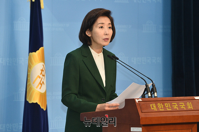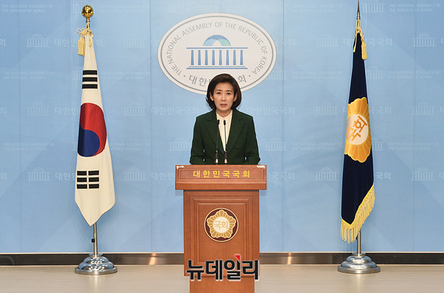 나경원 미래통합당 의원이 26일 오전 국회 소통관 기자회견장에서 제21대 총선 서울 동작을 출마 기자회견을 갖고 있다.