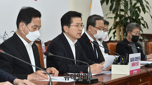 황교안 미래통합당 대표가 26일 오전 국회에서 열린 중앙선거대책위원회의에서 모두발언을 하고 있다.