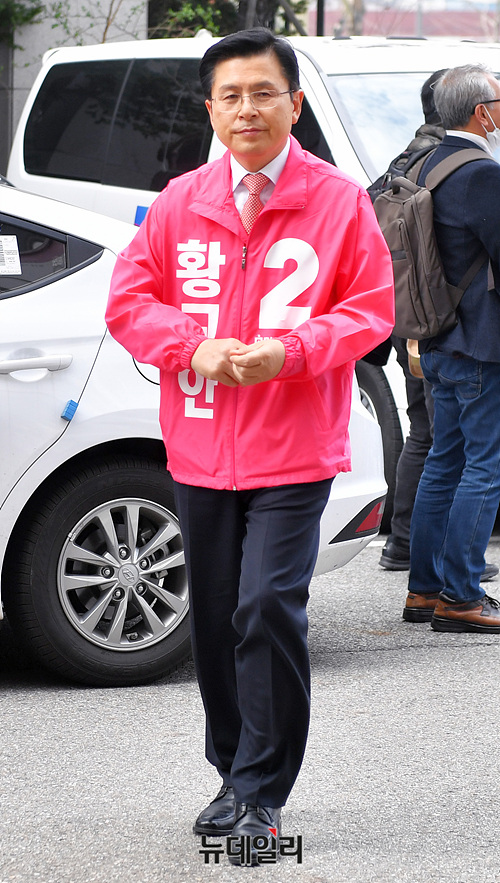 제21대 총선 서울 종로구에 출마하는 황교안 미래통합당 대표가 26일 오전 서울 종로구 선거관리위원회에서 후보자등록 접수를 마치고 나와 소감을 밝히고 있다.