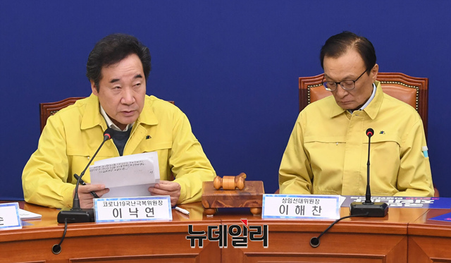 이낙연 코로나19국난극복위원회 위원장이 27일 오전 국회에서 열린 코로나19(우한폐렴)국난극복위원회-선거대책위원회 연석회의에서 모두발언을 하고 있다.