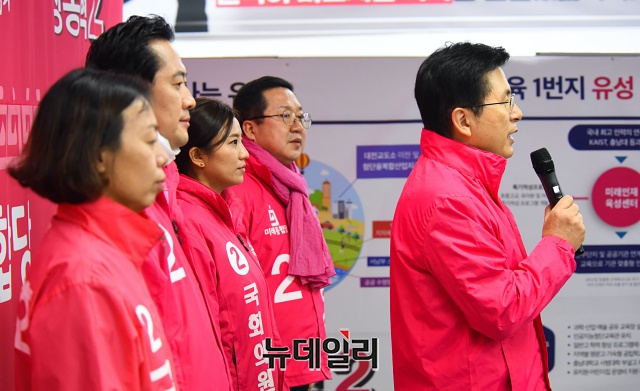 [포토] 대전지역 총선 후보 지지호소하는 황교안 대표
