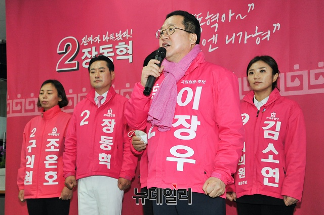 4.15 총선 대전 동구에 출마하는 이장우 미래통합당 후보가 27일 오전 대전 유성구 유성갑 선거사무소에서 발언을 하고 있다.(대전=권창회 기자)