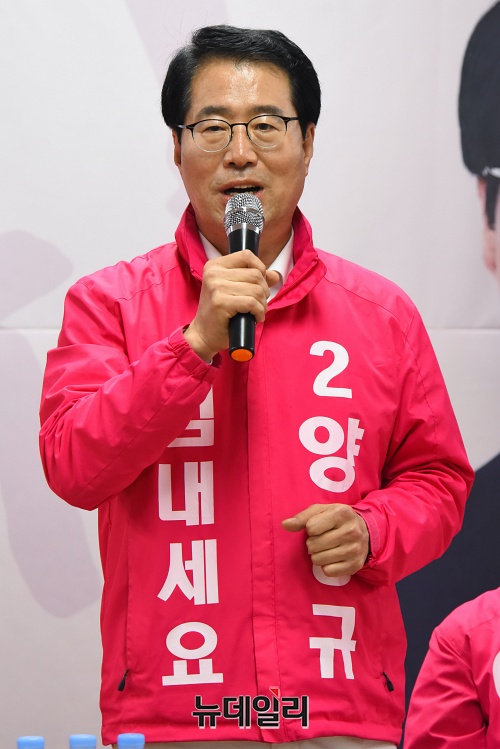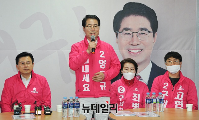 4.15 총선 대전 서구을에 출마한 양홍규 미래통합당 후보가 27일 오전 대전 서구 서구을 선거사무소에서 공약 발표를 하고 있다.(대전=권창회 기자)
