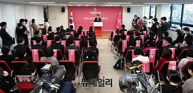 원유철 미래통합당 대표가 27일 서울 영등포구 한국당 중앙당사에서 열린 '국민 공천장 수여식'에서 인사말을 하고 있다.