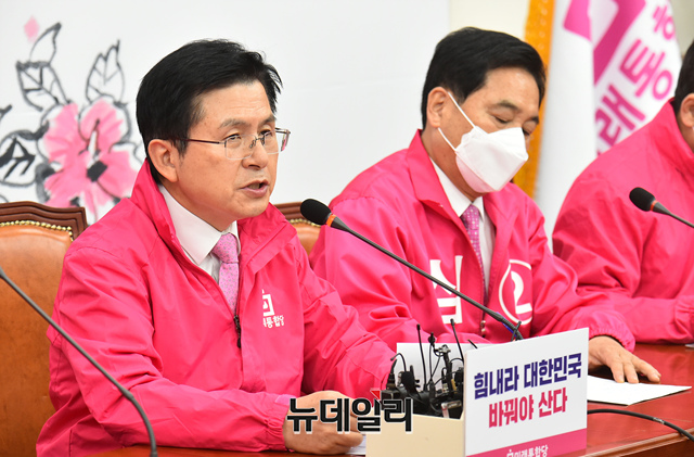 황교안 미래통합당 대표가 30일 오전 국회에서 열린 중앙선거대책위원회의에서 모두발언을 하고 있다.