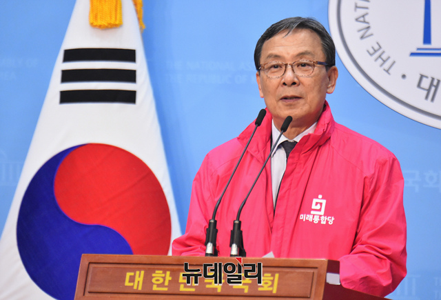 미래통합당 신세돈, 박형준 공동선거대책위원장이 30일 국회 소통관 기자회견장에서 '코로나19 위기를 타개하기 위한 통합당의 경제지원 방안' 관련 기자회견을 갖고 있다.