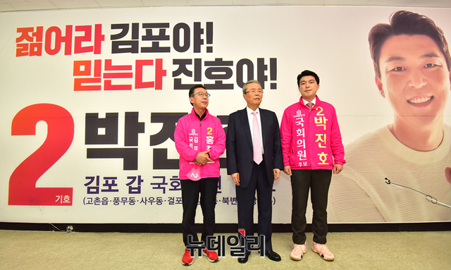 홍철호 미래통합당 김포을 후보가 31일 오후 경기 김포시 박진호(김포 갑) 선거사무실에서 총선 각오를 밝히고 있다. 이날 선거사무실에는 김포지역 후보를 격려하기 위해 김종인 총괄선대위원장이 방문했다. (경기 김포=정상윤 기자)