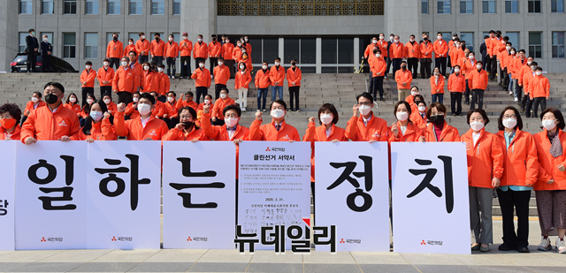 [포토] 총선승리 퍼포먼스 하는 국민의당