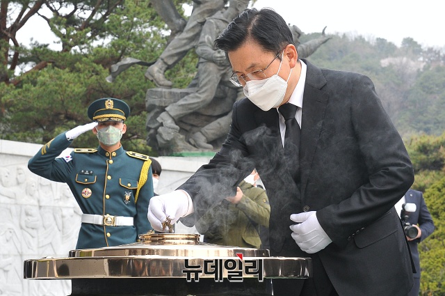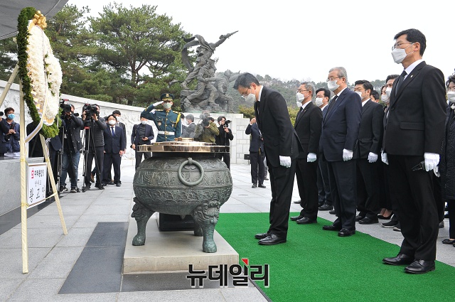 [포토] 현충원 찾아 분향하는 황교안 미래통합당 대표