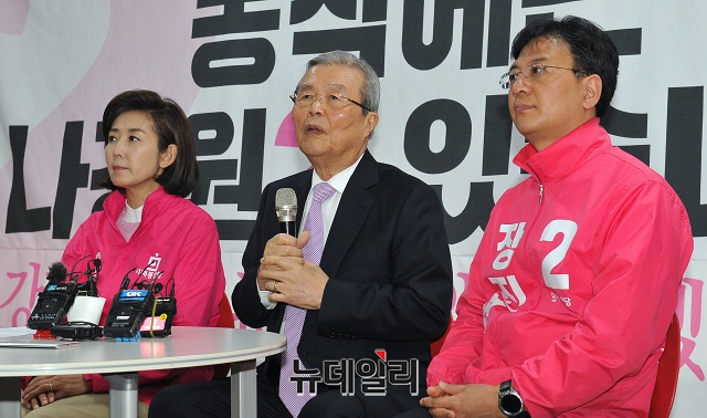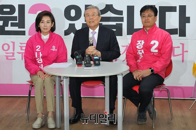 김종인 미래통합당 총괄선거대책위원장이 1일 오전 서울 동작구 동작을 선거사무소를 찾아 나경원 동작을 후보, 장진영 동작갑 후보를 격려하고 인사말을 하고 있다.