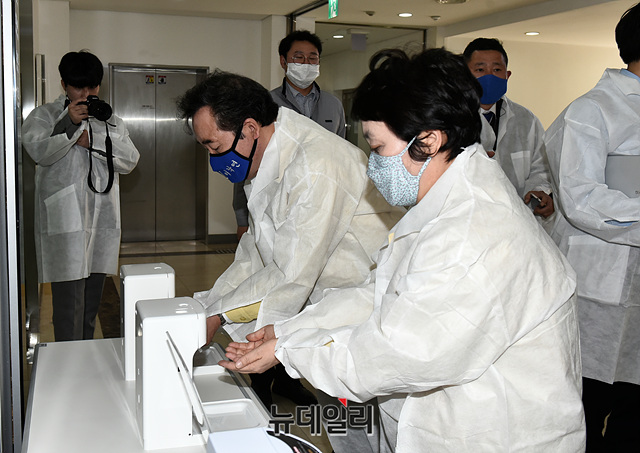 이낙연 더불어민주당 코로나19 국난극복위원장이 1일 오후 '코로나19(중국 우한 폐렴)' 백신을 연구 중인 경기 용인시 GC녹십자의료재단 본사를 방문해 둘러보고 있다. (경기 용인=박성원 기자)