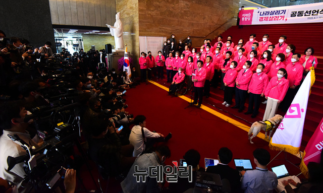 [포토] 미래통합당·미래한국당 '나라살리기, 경제살리기' 공동 선언식