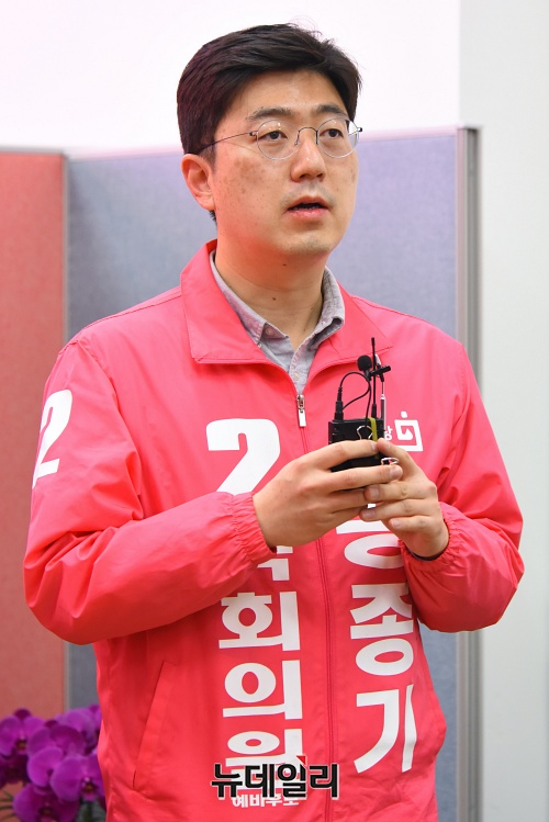 홍종기 미래통합당 수원정 후보가 1일 오후 경기 수원시 수원을 선거사무소에서 총선 각오를 밝히고 있다.(경기 수원=권창회 기자)