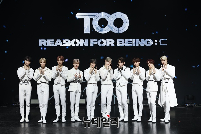 아이돌그룹 'TOO(티오오)'가 1일 오후 온라인으로 진행된 첫번째 미니앨범 'REASON FOR BEING : 인(리즌 포 비잉:인)' 쇼케이스에서 포토타임을 갖고 있다. 멤버는 치훈, 동건, 찬, 지수, 민수, 재윤, 제이유, 경호, 제롬, 웅기로 구성됐다.타이틀곡 'Magnolia(매그놀리아)'는 파워풀한 퍼포먼스와 칼군무가 어우러진 곡이다. 앨범은 타이틀곡 '매그놀리아'를 포함해 5트랙으로 구성됐다. 1일 낮 12시 첫 공개. (사진=스톤뮤직 엔터테인먼트)