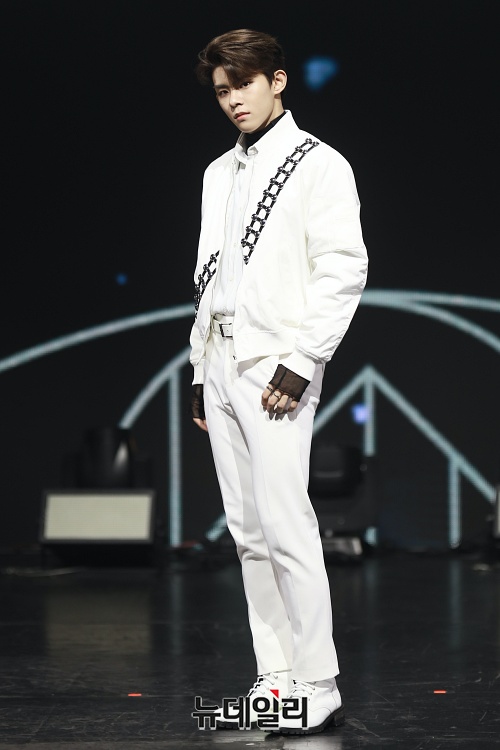 아이돌그룹 '티오오(TOO)' 멤버 동건이 1일 오후 온라인으로 진행된 첫번째 미니앨범 'REASON FOR BEING : 인(리즌 포 비잉:인)' 쇼케이스에서 포토타임을 갖고 있다. 멤버는 치훈, 동건, 찬, 지수, 민수, 재윤, 제이유, 경호, 제롬, 웅기로 구성됐다.타이틀곡 'Magnolia(매그놀리아)'는 파워풀한 퍼포먼스와 칼군무가 어우러진 곡이다. 앨범은 타이틀곡 '매그놀리아'를 포함해 5트랙으로 구성됐다. 1일 낮 12시 첫 공개. (사진=스톤뮤직 엔터테인먼트)